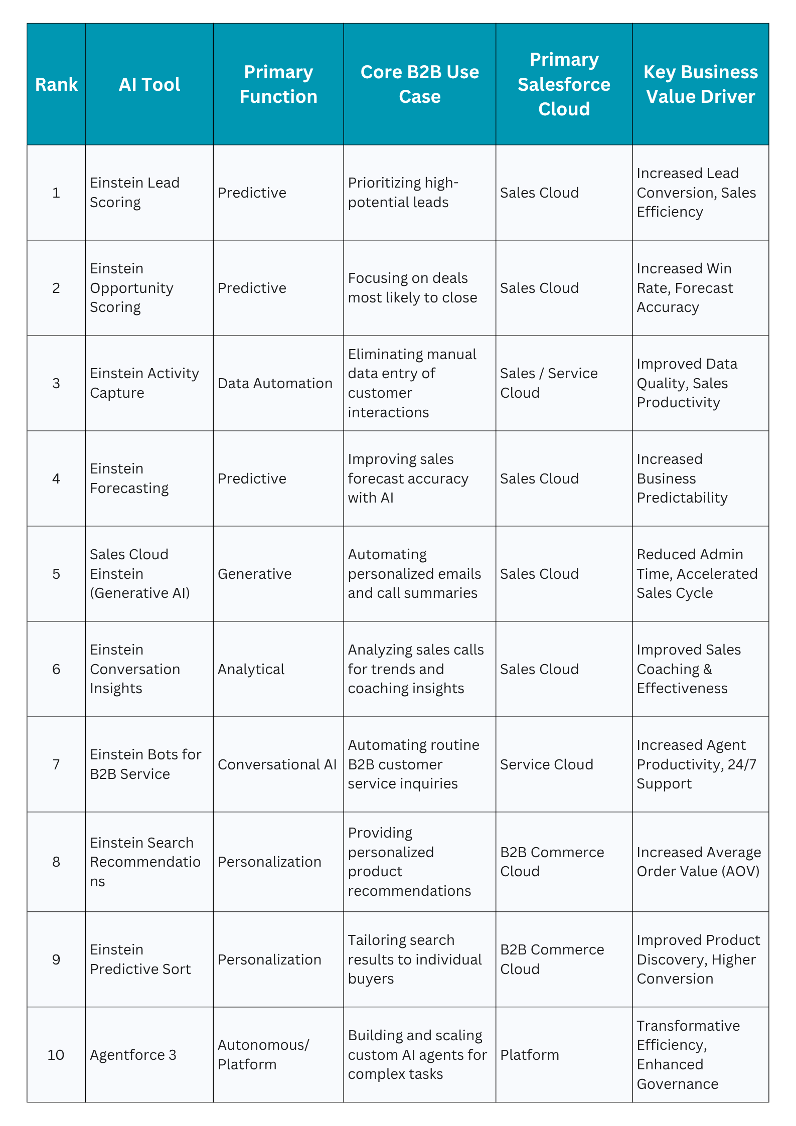Here are the ten most valuable AI tools from Salesforce for B2B companies: